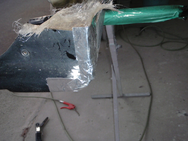 サイドスポイラーの表側にアルミテープを貼り、