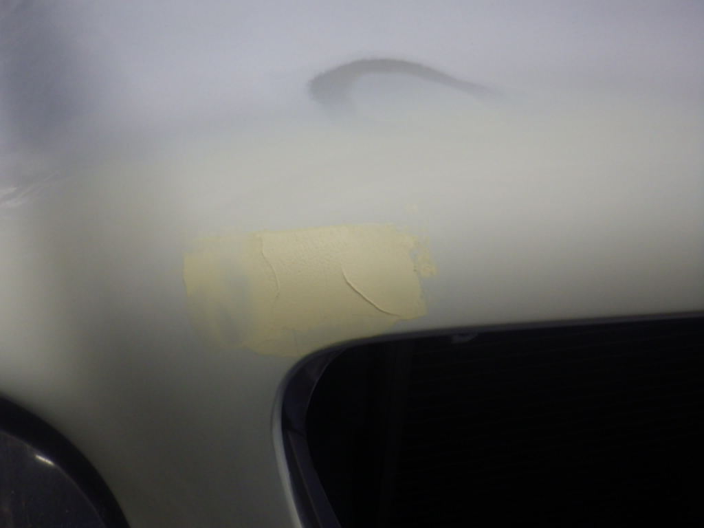 分解作業の後、キズの研ぎ込み作業を行い、パテ修正作業を進めていきました。